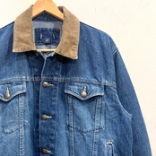 襟がコーデュロイに切り替えられたデニムトラッカージャケット。