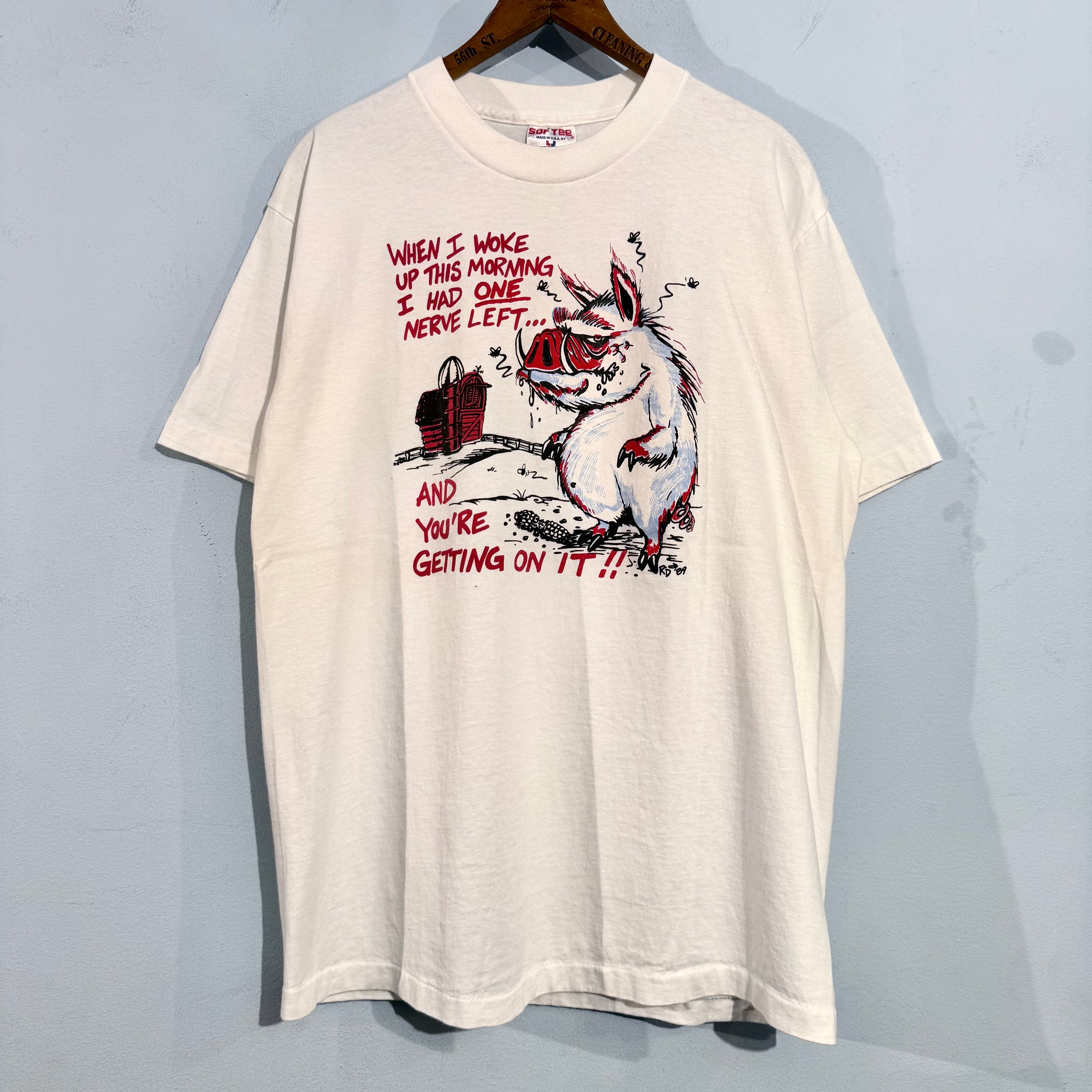 起きたらめちゃくちゃ機嫌悪かった家畜のブタが描かれたデザインTee!