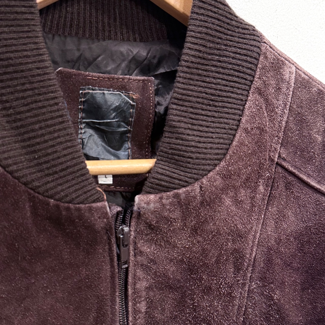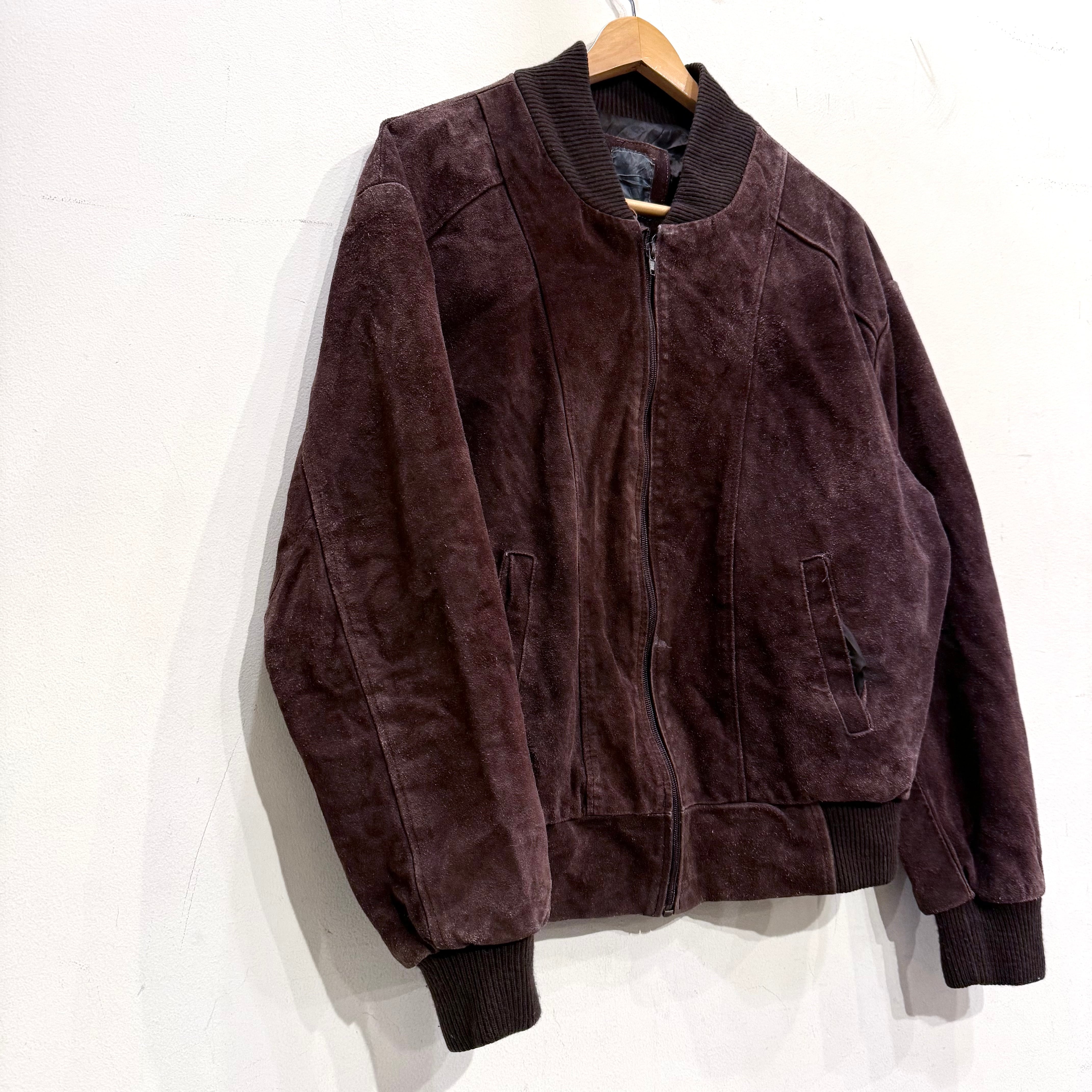 リブ切り替えのスタジャンタイプ、ダークブラウンの色味が最高なスエードジャケット!