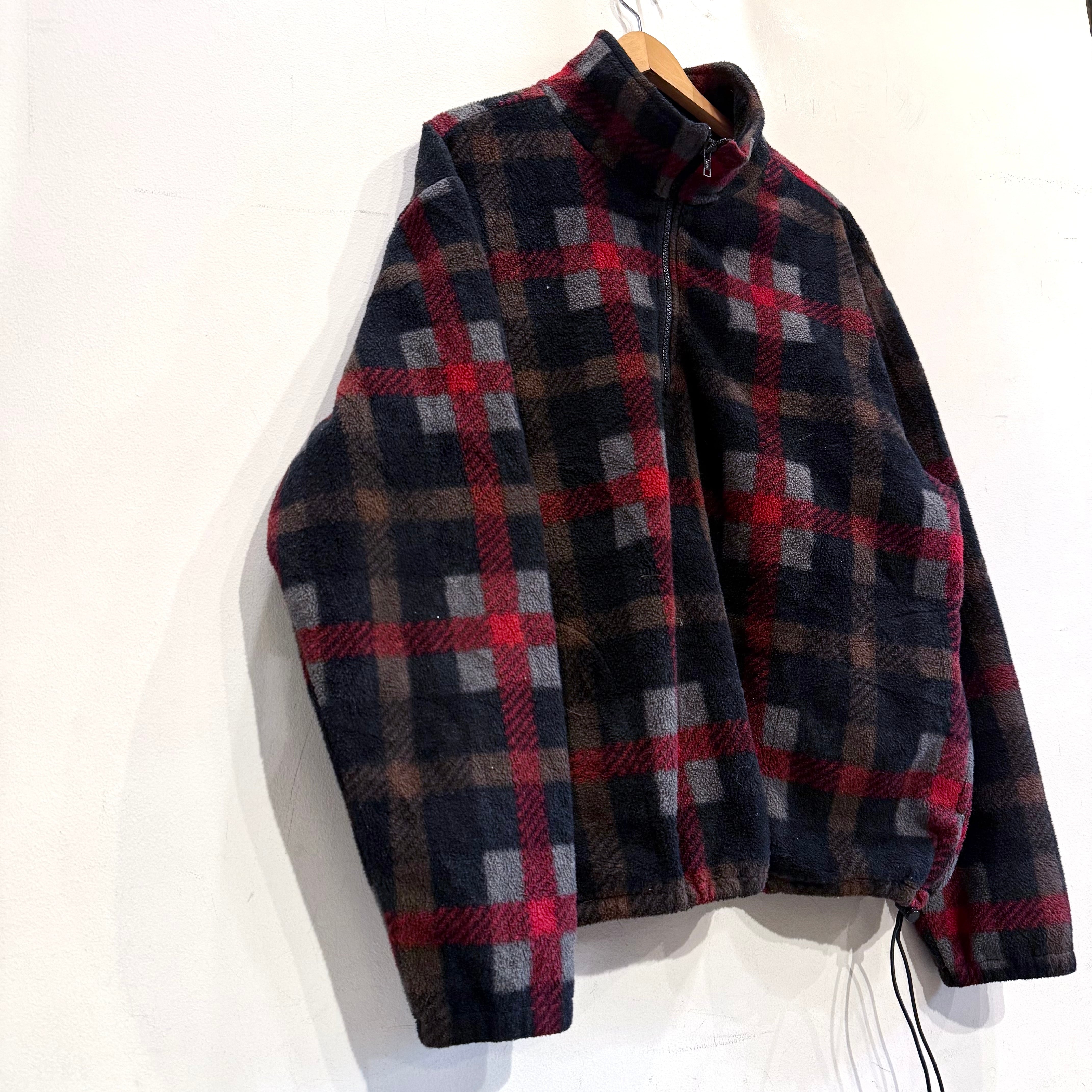 雰囲気の良いカラーリングのチェック柄、フリース素材のハーフジップ!