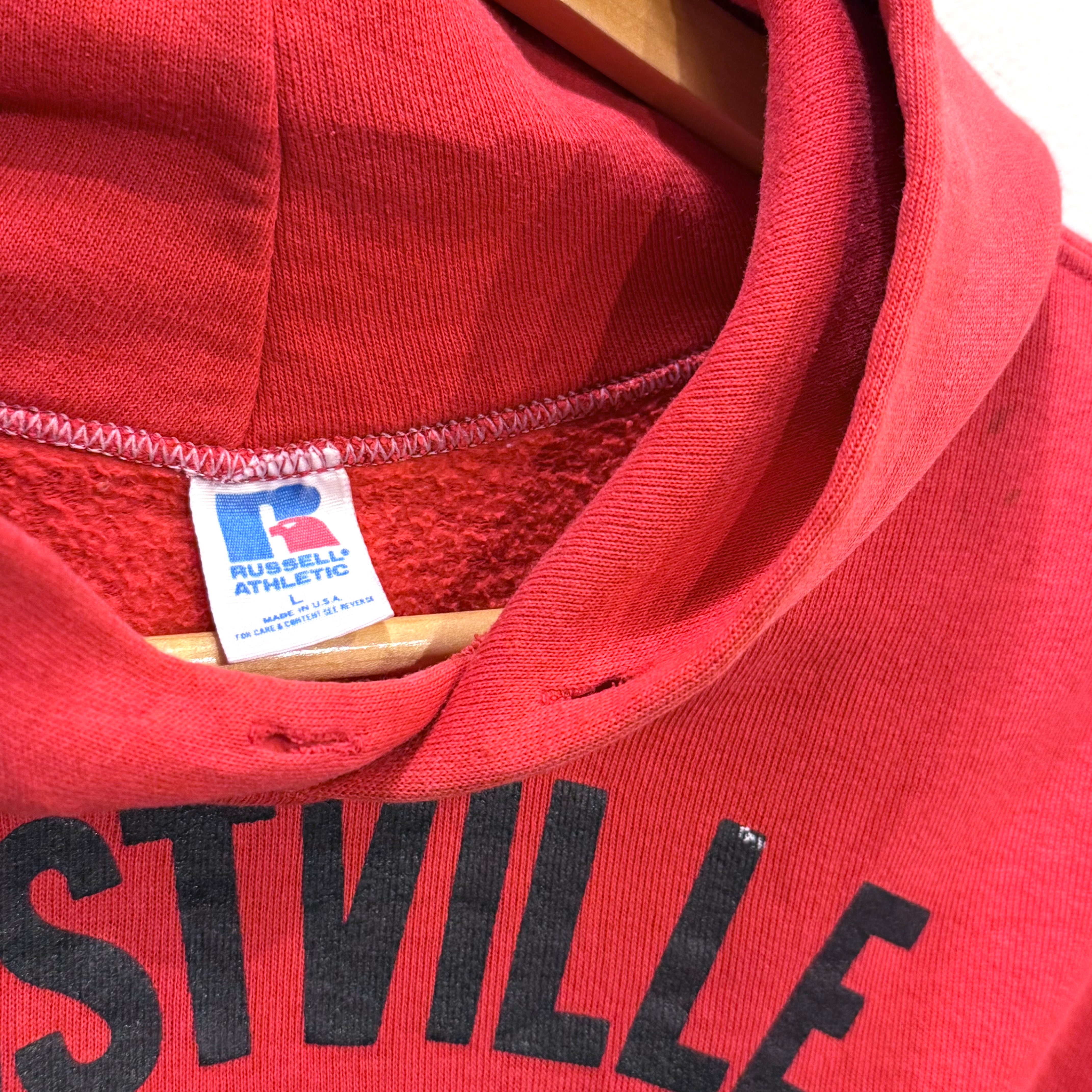 定番のRUSSELLタグよりちょい古め、プリントタグの付いた80年代のフーディ!