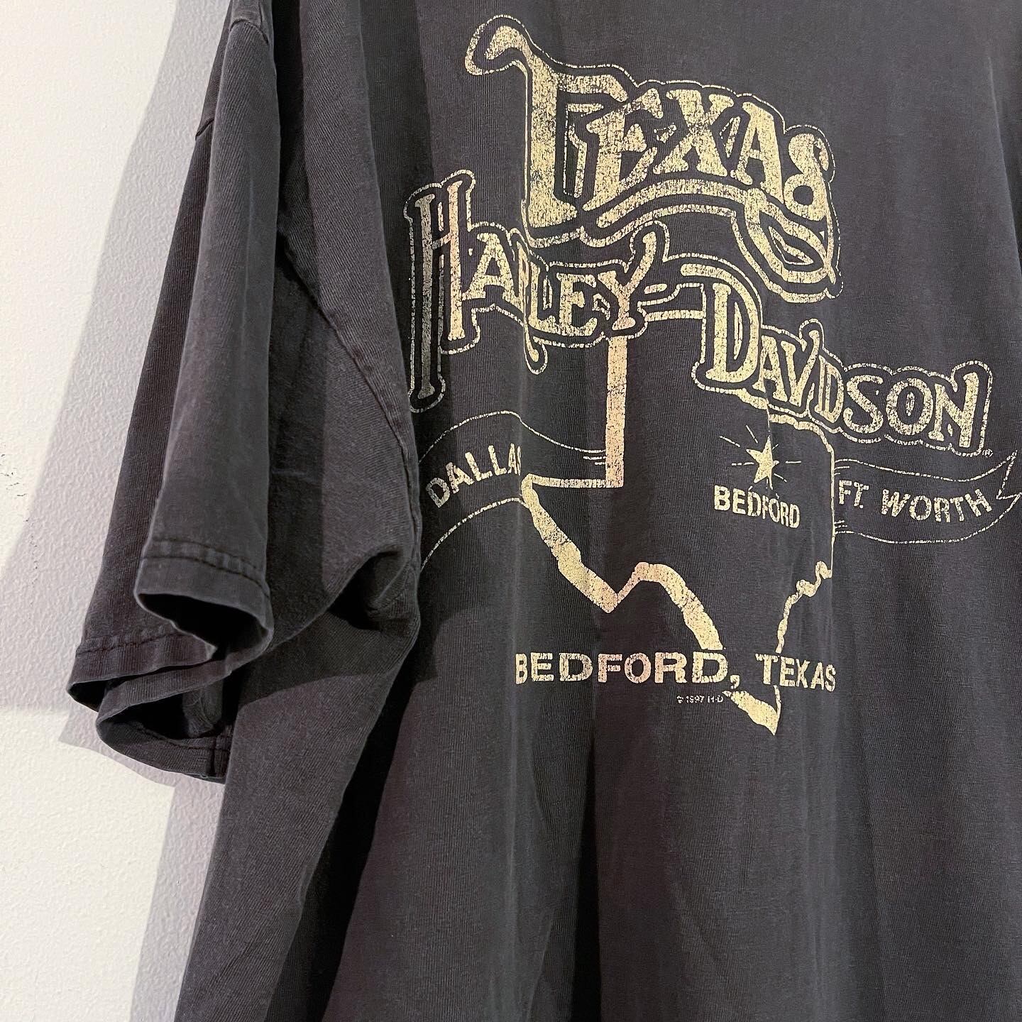 褪色したブラックのコットンボディ、プリントも100点のハーレーTee。