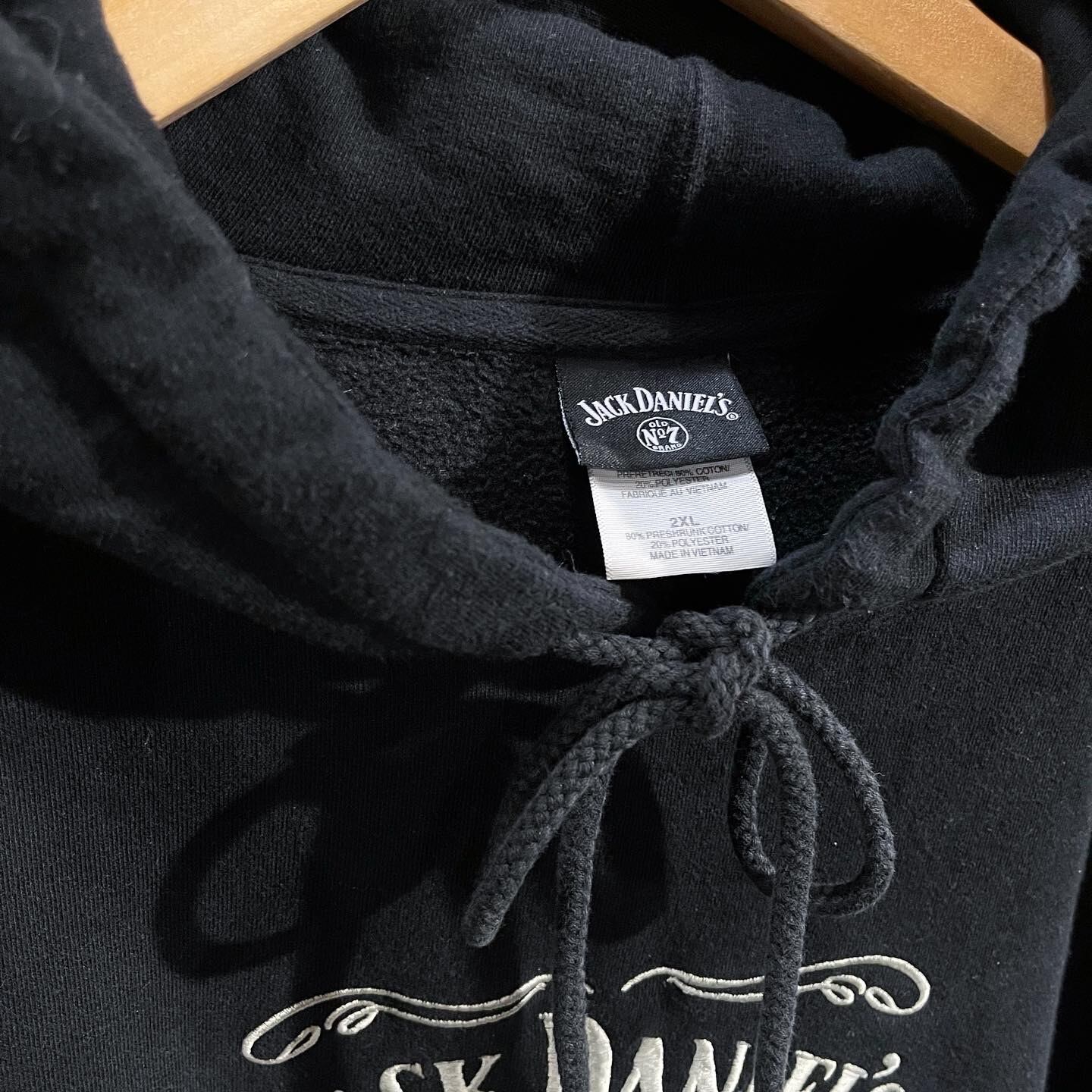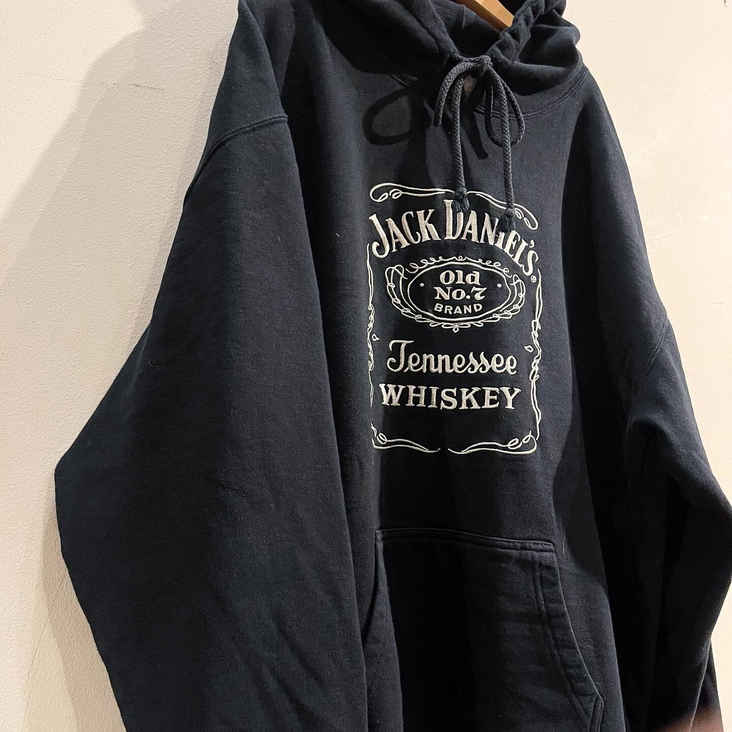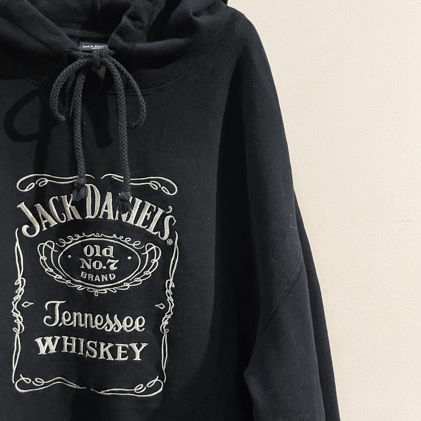 古着界の人気ロゴ、ジャックダニエルウイスキーのフーディ。