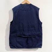 ハンディング風のデザイン、黒に近いダークネイビーのコットンベスト。