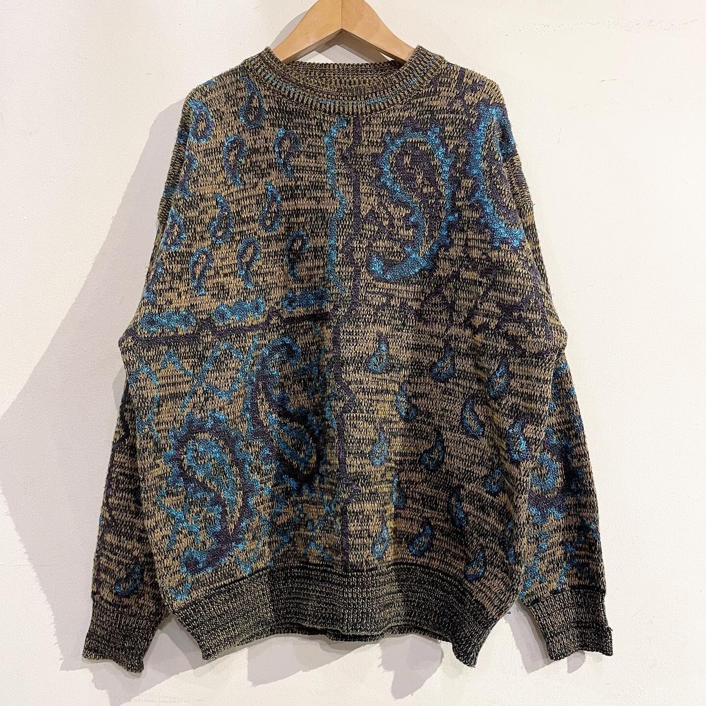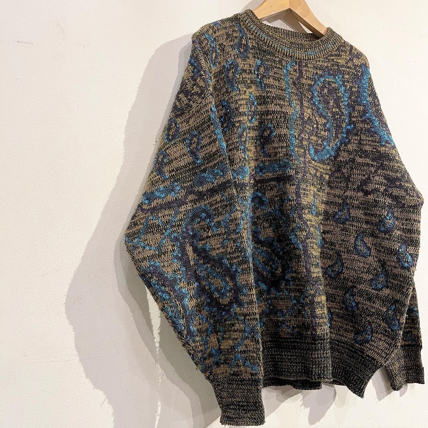 珍しい大きめなペイズリーパターンのアクリルニット。