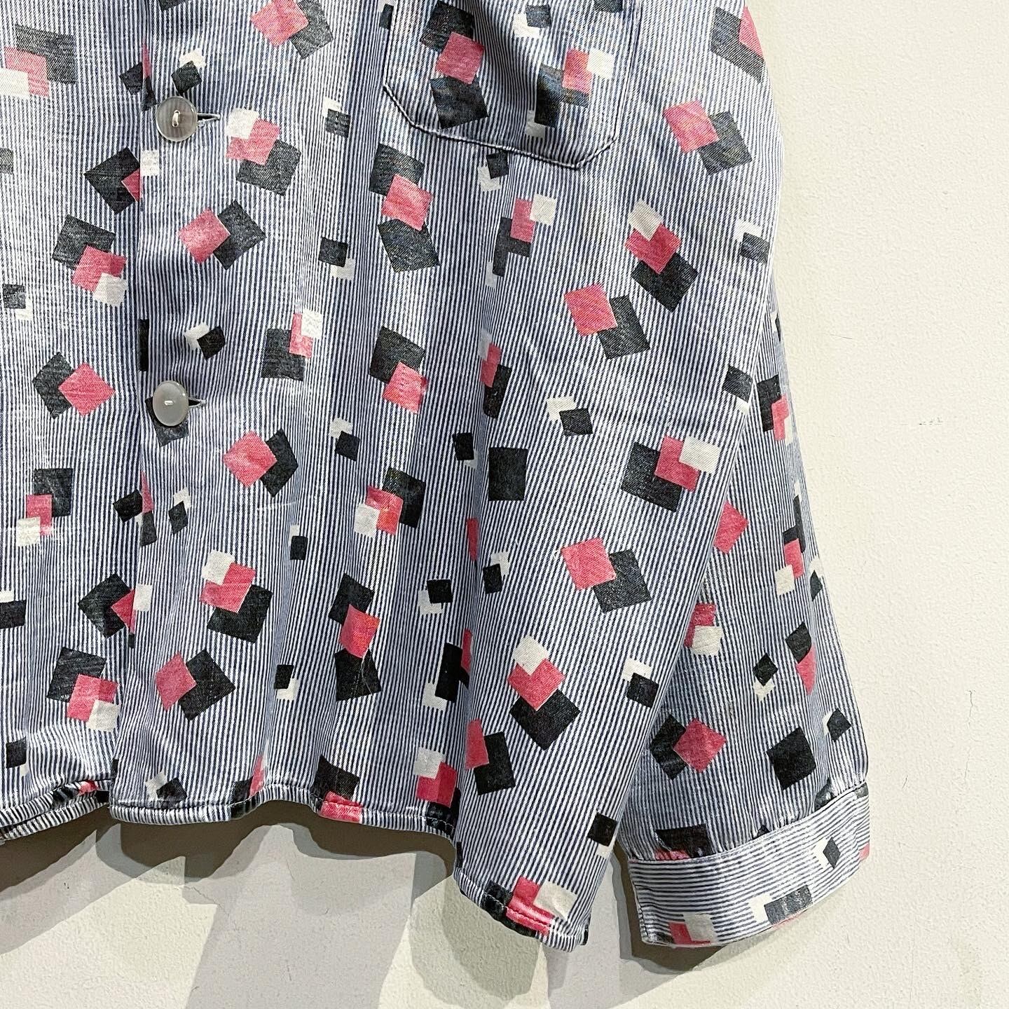 最高な黒ピン幾何学柄のvintageパジャマシャツ。