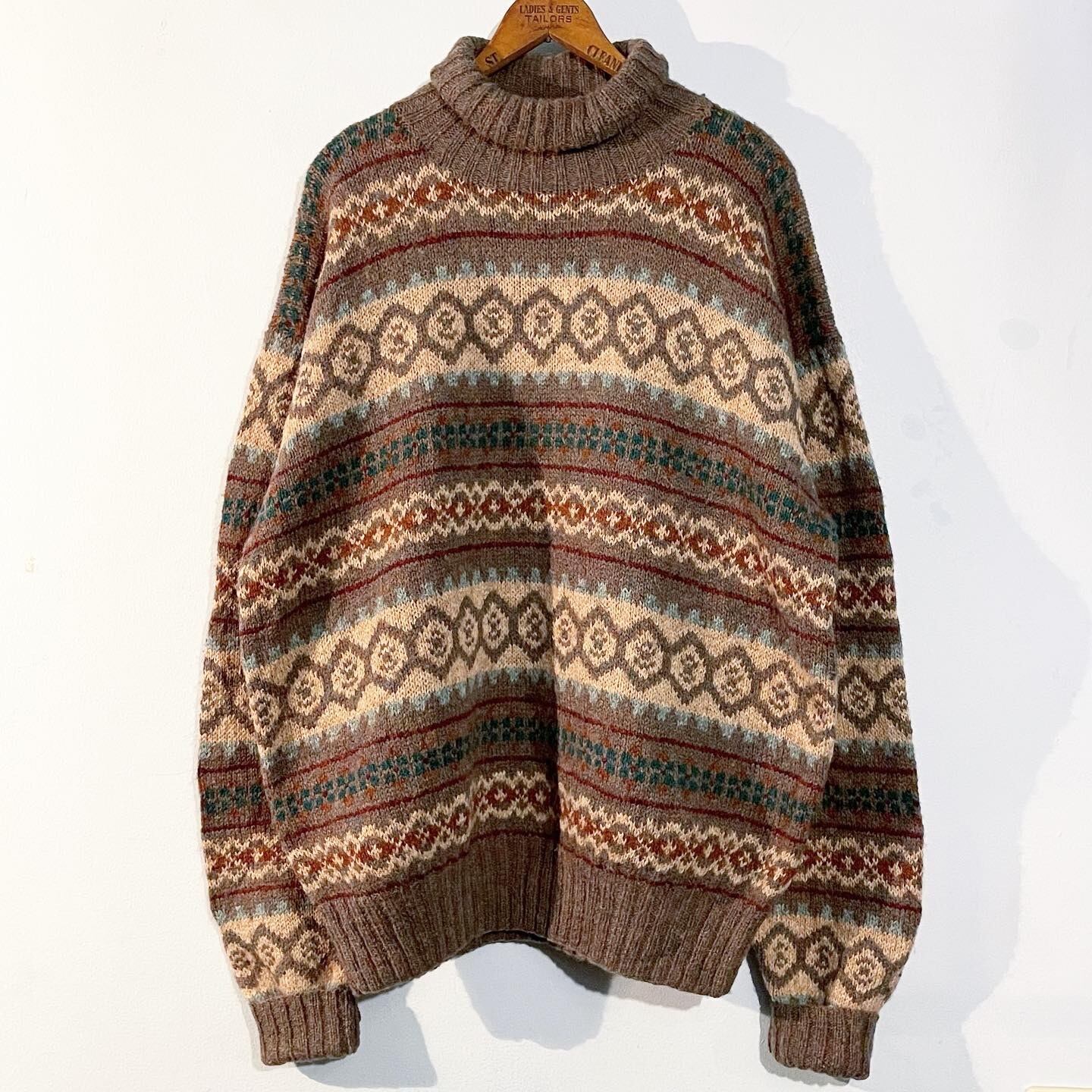 レトロ感漂う総柄のハンドニット。