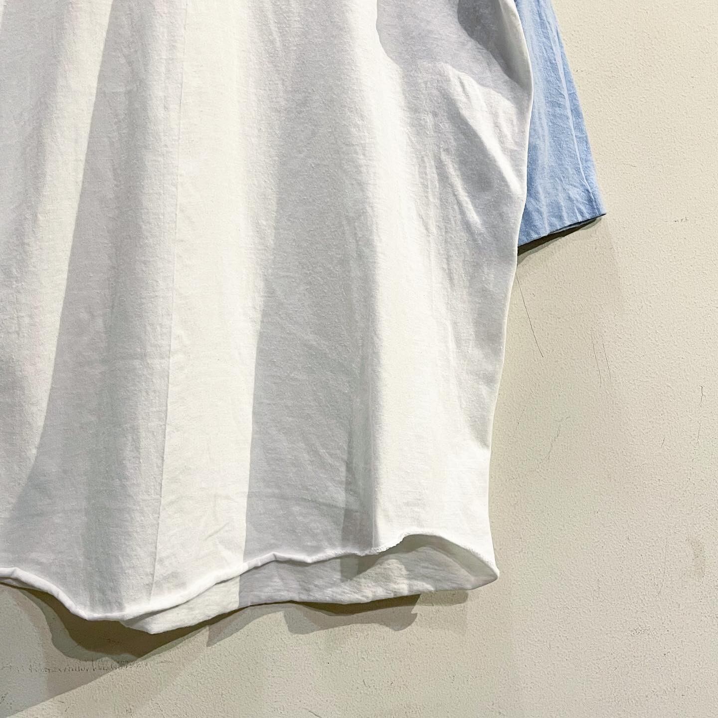 古着の中でも見かけなくなったvintageラグラン、ホワイトにライトブルーボディ、プリントは赤のベースなので春夏らしい印象です!